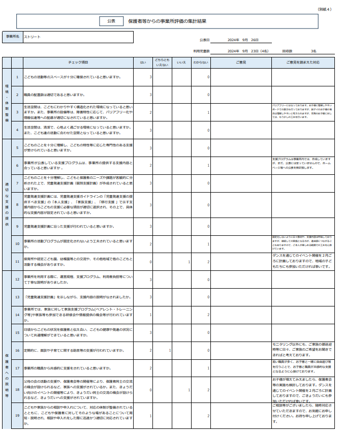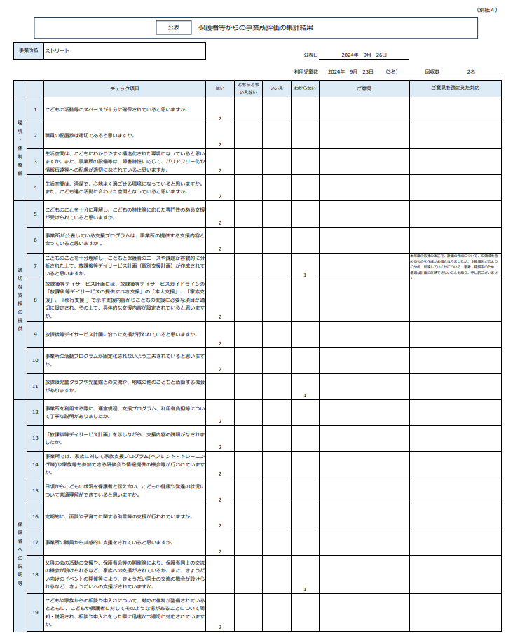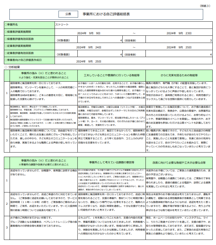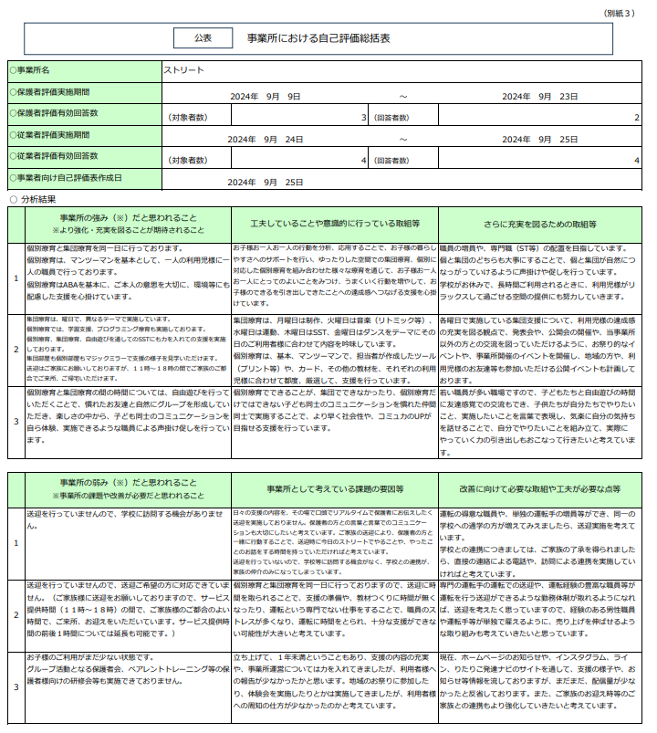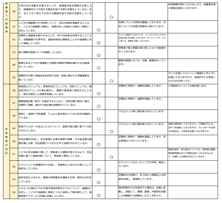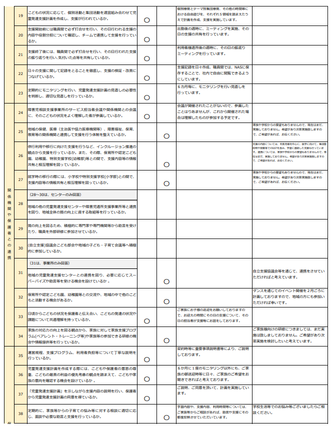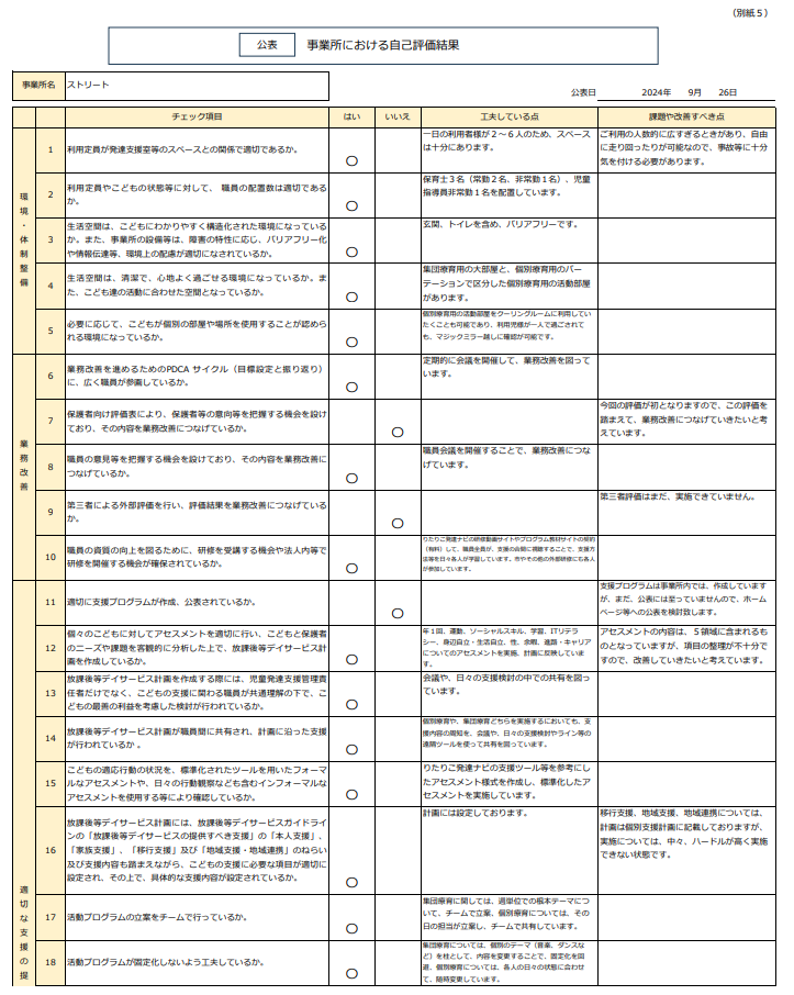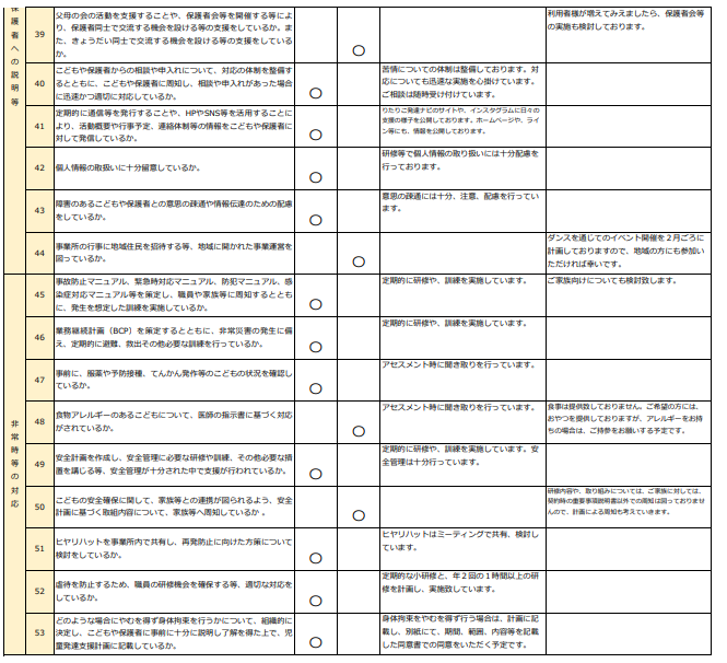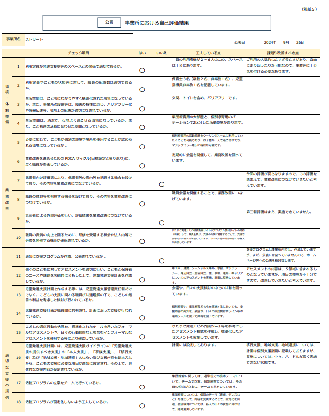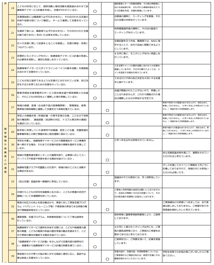 放課後等デイサービス自己評価結果